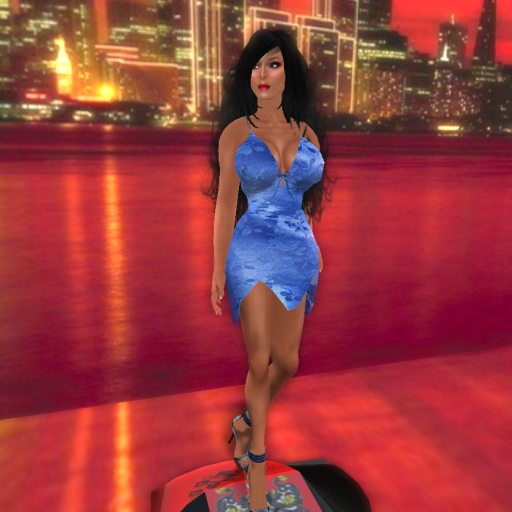 Description: A very pretty blue silk dress, with a double v-cut hem.