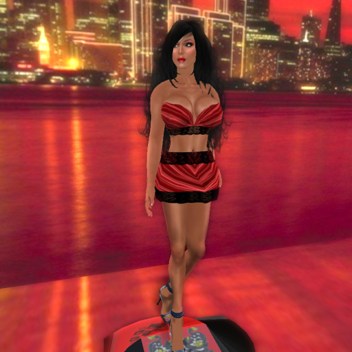 Description: A sexy little mini skirt set. In red silk & black lace.