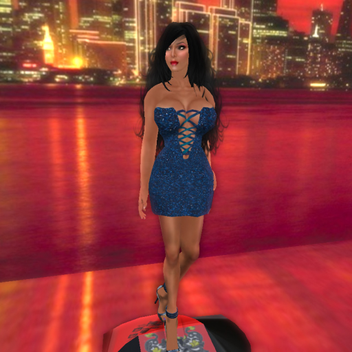 Description: A very pretty navy sparkles dress with tie up the front straps.