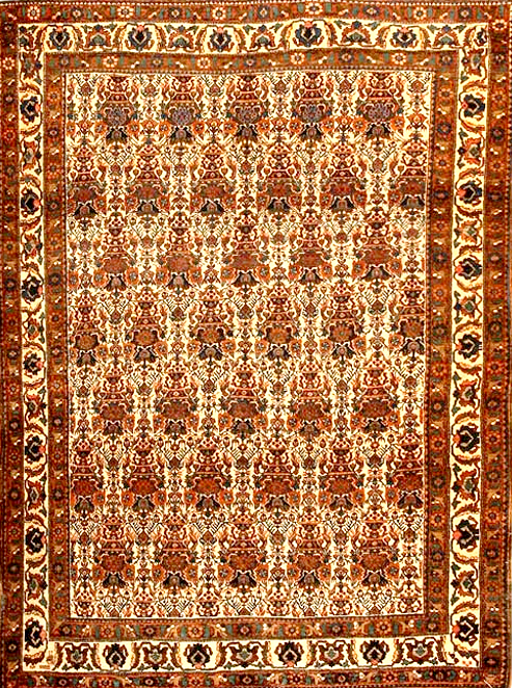 Description: Abedeh design mainly reds on a cream background with heavy border